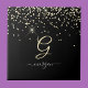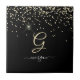 Gold Glitter & Monogram White Script Name on Black Tile