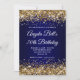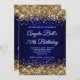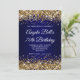Gold Glitter Navy Blue Ombre 70th Birthday Invitation