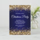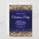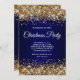 Gold Glitter Navy Blue Ombre Christmas Party Invitation