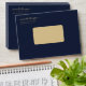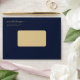 Gold Glitter Navy Blue Script Name and Return Address. A sparkly touch to send your birthday mailings, on navy blue, with a faux glitter gold border on back flap, your name is in a stylish script with swashes and to top left on the front, with your return address beneath. Easily personalise the text to your own details. A gold box is on the front so guest names and addresses will show when you hand write them in. You can delete this if not required via the edit further option.
