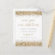 Gold Glitter White New Year New Adventures Engagement Announcement. A little sparkle to let everyone know your exciting news on a convenient postcard. Elegant gold faux glitter confetti borders are at the top and bottom and also on the back. New Year New Adventures and Engagement are set in a modern handwriting style. Easily personalise the rest of the text to your own.