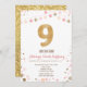 Gold Glitter Ninth Birthday Invitation