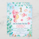 Sweet seahorse under the sea themed first birthday invitation featuring a seahorse, various fish and coral. This design also features a faux gold glitter number that is removable and is a way to invite guests to an under the sea themed first birthday party.