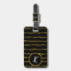 Features a wavy gold glitter line pattern on a black background. Personalise with an initial on the front, on a foil bordered circle, and a name and address on the back.