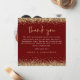 Gold Glitter Photo Engagement Thank You Burgundy. Borders of faux gold glitter are at the top and bottom edges and Thank You is in a set handwriting style script in coordinating gold on a classic black. Easily personalise the rest of the text. On the back replace the sample image with a favourite one from your party of square orientation.