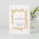 Gold pine frame with cone confetti white winter Christmas wedding bridal shower Invitation. A lovely wedding design that includes a gold pine frame with cone and needles and gold confetti borders on white background. The back is covered with a gold confetti.