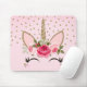Gold Glitter & Pink Floral Unicorn Trendy Mouse Mat