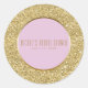 Gold Glitter + Pink Sparkle Glam Wedding Favour Classic Round Sticker