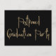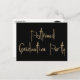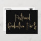 The front of the postcard is solid black (which you can change to any colour you prefer) over which I've placed a graphic that reads "Postponed Graduation Party" in a modern handwriting font. This text graphic has been embellished with a faux gold glitter effect. On the reverse I've placed template fields so you can add your own personal details. Change any of these as you see fit. You may also change font on the back, if you wish.