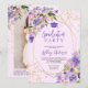 Gold glitter Purple girly floral photo graduation Invitation