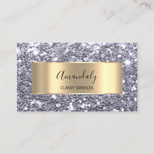 Gold Glitter QRCode Logo Violet Purple Grey Spark Business Card