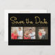 Gorgeous faux gold glitter typography on the front of this designer postcard which you can upload into with 3 of your own engagement/wedding photo portraits. Easily and quickly personalise this designer professionally printed thank you postcard here and now by just typing over the example text and adding your own photographs. Elegant, chic, simple and classy gold script/cursive typography.