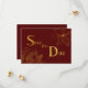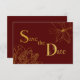 Perfect for fall celebrations: dark red invitation with gold glitter and foil effect floral design and 'Save the Date' text.
