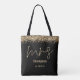 Gold Glitter Script Mrs Name Date Bride Black Tote Bag