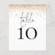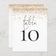 A size 4.5 x 5.6” semi-gloss 110lbs weight, which is of similar thickness to a postcard, with ONE per sheet. Gold Glitter Script Wedding Table Number. An elegant design with table in a set handwriting style script and your table number beneath. Easily personalise the number. A silver faux glitter border runs along the top edge. The same design is on the other side.