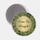 Round magnet with an image of gold glitter shamrocks on dark green and a brushed gold circle with a customisable sentiment. See the entire St. Patrick's Day Magnet collection in the PARTY FAVORS section.