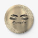 Gold Glitter Sparkle Eyelashes Monogram Name Paper Plate