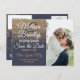 Gold Glitter Sparkles Navy Blue Save the Dates Announcement Postcard