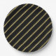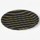 Gold Glitter Stripe Pattern On Black Paper Plate