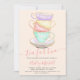 Gold glitter tea cup watercolor chic baby shower with pastel watercolor stacked tea cups and gold glitter sparkles at the back