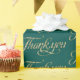Gold glitter thank you text pattern on turquoise wrapping paper