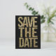 Faux Gold Glitter Save the Date Typography on bold black background. a bold, strong, trendy designer typography Wedding Save the Date Postcard template to suit most weddings. Whether black and white is your theme, you're having a night wedding, a gold glitter wedding, a modern wedding... this affordable designer post card design is for you!