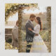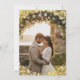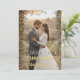 Perfect for summer or autumn weddings, this design beautifully balances rustic charm with modern glamour. The front displays your names and wedding date in a stylish gold-tone geometric font, making it a wonderful keepsake for your guests. Easily personalize this template with your favorite wedding portrait and details to create a truly memorable message of thanks.