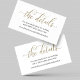 Use business cards to easily and efficiently communicate RSVP and wedding details. Beautiful calligraphy in faux gold glitter adds a touch of elegance.