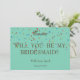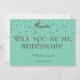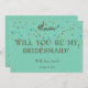 This 5" x 7" green gold glitter beautiful bridesmaid invitation card. This is best for the bride, who loves gold colours and polka dots. It is a truly fun way to ask your very lover or girl friend to be a part of your bridal.