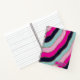 If you love taking notes and writing composition whether for personal, school or business purposes, you might consider adding a notebook cover that will catch your eye. This contemporary digital art features a fun groovy visual chic theme through the multicolored scheme composed of hot pink, pastel pink, light and dark blue tones matched with the artistic wavy striped lines. The gold foil glittery curves incorporated to it add creativity to the graphic details. You can personalise this by putting a name, subject or any text you prefer inside the cute oblong shape label frame.