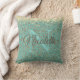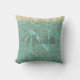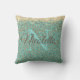 Gold Glittery Feathers Monogram on Turquoise Cushion