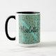 Gold Glittery Feathers Monogram on Turquoise Mug