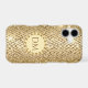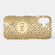 Here's a glamourous monogram phone case that grabs attention, but is in good taste, too. It features your monogram on a circle banner that is lined with sparkly faux gems. The monogram banner is placed on a geometric diamond pattern background in tones of brown, tan, and gold, with a sparkly light overlay. Pretty!