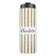 Chic Thermal Tumbler done in a white and golden glitter looking striped pattern. Personalise the black text to read what you want. Great gift idea.