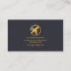 At the top are your prestigious name and job title alongside a slogan option near the gold globe. Towards the base lies a gold logo of an airplane with your business name and contact details.