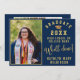 GRADUATE Gold Grad Cap Bold Script 4 Photo Graduation Invitation Card. Congrats the GRAD! Congratulations on their well-deserved success and celebrate them with this beautiful card. All the texts are pre-arranged for you to personalise easily and quickly with your own details.