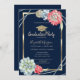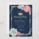 Gold glitter graduation cap, watercolor desert Cactus red succulents on navy blue background.