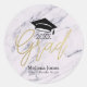 Gold GRAD Graduate Graduation Modern Script Marble Classic Round Sticker