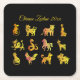 Gold Gradient Chinese Zodiac Animal Black Square Paper Coaster