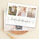 This design features modern typography calligraphy script, a gold golden with a four 4 photo layout, with an elegant graduate text overlay, with QR code, website for online URL. a stylish trendy elegant high school, a minimalist minimal simple class, a graduation grad party invites, graduate typography, and calligraphy, for high school or college announcement, a stylish graduation party invitation, a clean basic simple style design