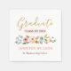 Gold Graduate Script Watercolor Floral Graduation Napkin