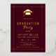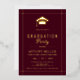 Gold graduation cap Class Of 2026 burgundy formal graduation gold foil invitation. Honor the achievements of the Class of 2026 graduate with these elegantly crafted real gold foil burgundy invitations. Adorned with a gold graduation cap and delicate gold borders that meet at the corners, these invitations look elegant and classy.