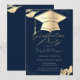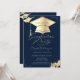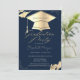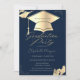 Gold Graduation Cap Frame Gold Brush Stroke Blue Invitation