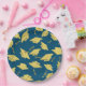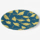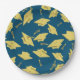 Gold Graduation Caps in the Air on Blue Fun Party Paper Plate