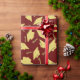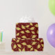 Gold Graduation Caps in the Air on Maroon Party Wrapping Paper