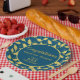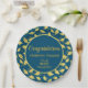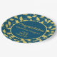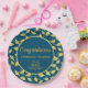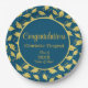 Gold Graduation Caps Tossed on Blue Personalised Paper Plate