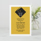 Creative graduation invites featuring classic black grad cap on gold background.