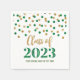 Customisable graduation napkins for class of 2023 with glamourous gold and green confetti pattern.