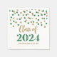 Customisable graduation napkins for class of 2024 with glamourous gold and green confetti pattern.