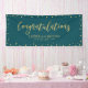 This event banner design features stylish gold confetti and "Congratulations" typography on a teal green background. This congratulations banner is the perfect decoration for a modern chic party. You can customise the name and text at the bottom of the banner for your events.(Birthday, Retirement, Anniversary, Graduations or any other celebrations)